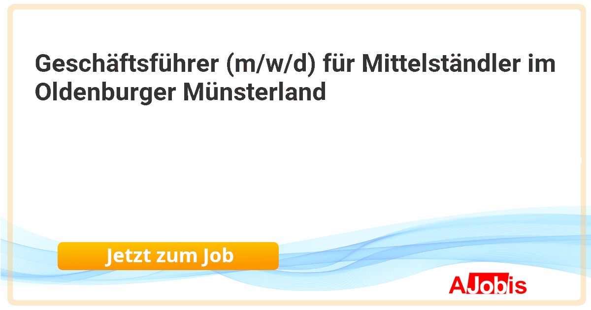 Wefers & Coll. Unternehmerberatung GmbH & Co. KG - Oldenburg (Oldb) [28.11.2025] --Zum Hauptinhalt springen Geschäftsführer (m/w/d) für Mittelständler im Oldenburger Münsterland Oldenburger Münsterland Vollzeit zum nächstmöglichen Zeitpunkt unbefristet Unternehmensprofil Im Oldenburger Münsterland ist unser Mandant fest verwurzelt. Seit über... |