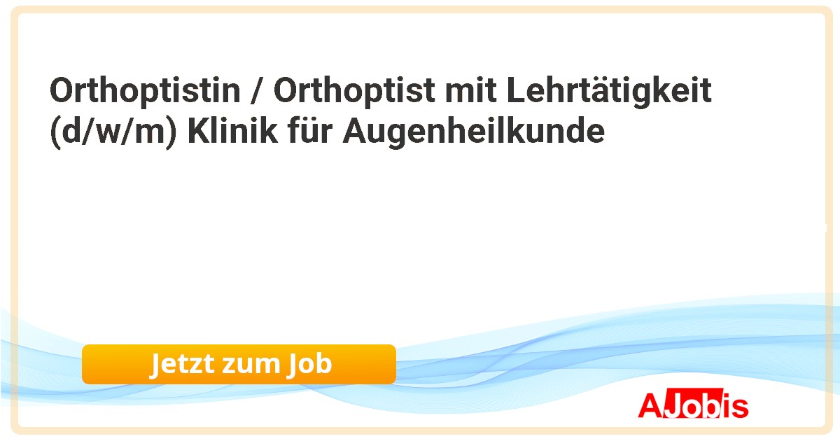 Universitätsklinikum Carl Gustav Carus Dresden - Dresden [11.11.2025] --Die Stelle ist zum nächstmöglichen Zeitpunkt in Voll- oder Teilzeitbeschäftigung für zunächst 2 Jahre befristet zu besetzen. Die Vergütung erfolgt nach den Eingruppierungsvorschriften des jeweiligen Haustarifvertrages und ist bei Vorliegen der persönlichen... |
