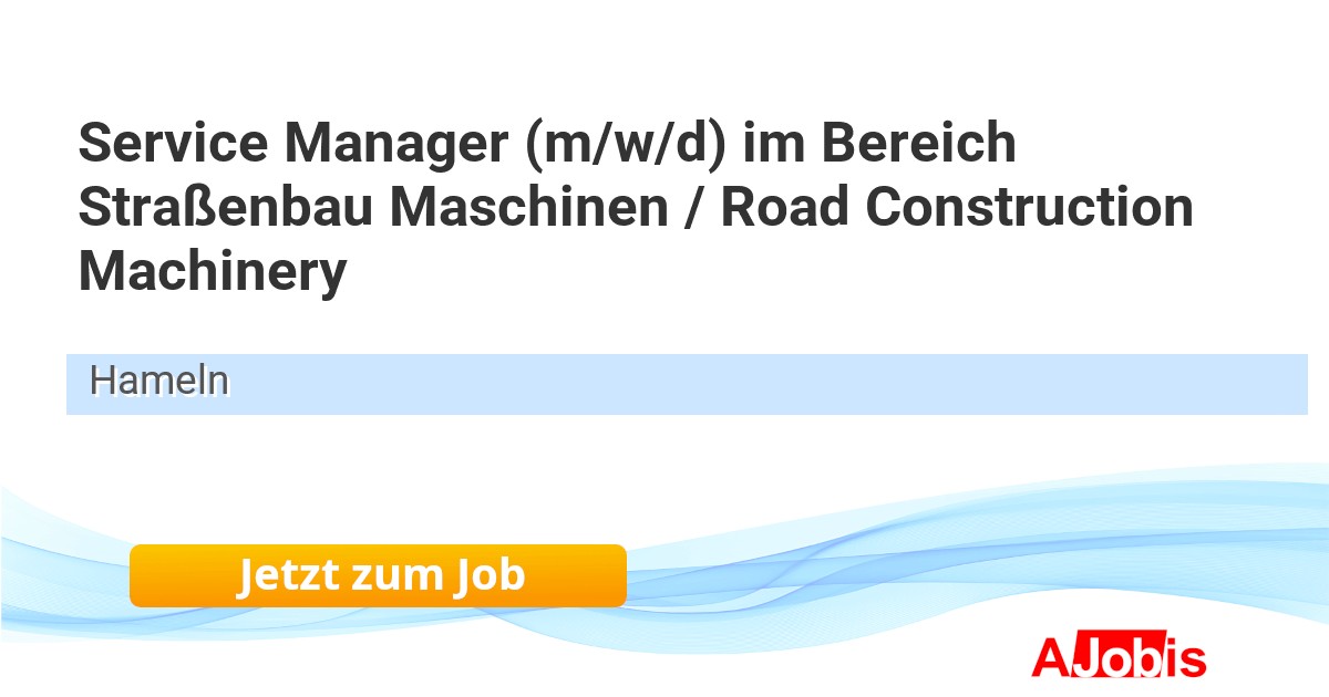 ABG Allgemeine Baumaschinen-Gesellschaft mbH - Hameln [27.11.2025] --Als Service Manager (m/w/d) bist du die zentrale Schnittstelle zwischen unseren Partnern und dem Unternehmen im Bereich Aftersales . Du sorgst dafür, dass unsere Kunden auch nach dem Kauf bestens betreut sind - mit dem Ziel, Prozesse stetig zu verbessern, die... |