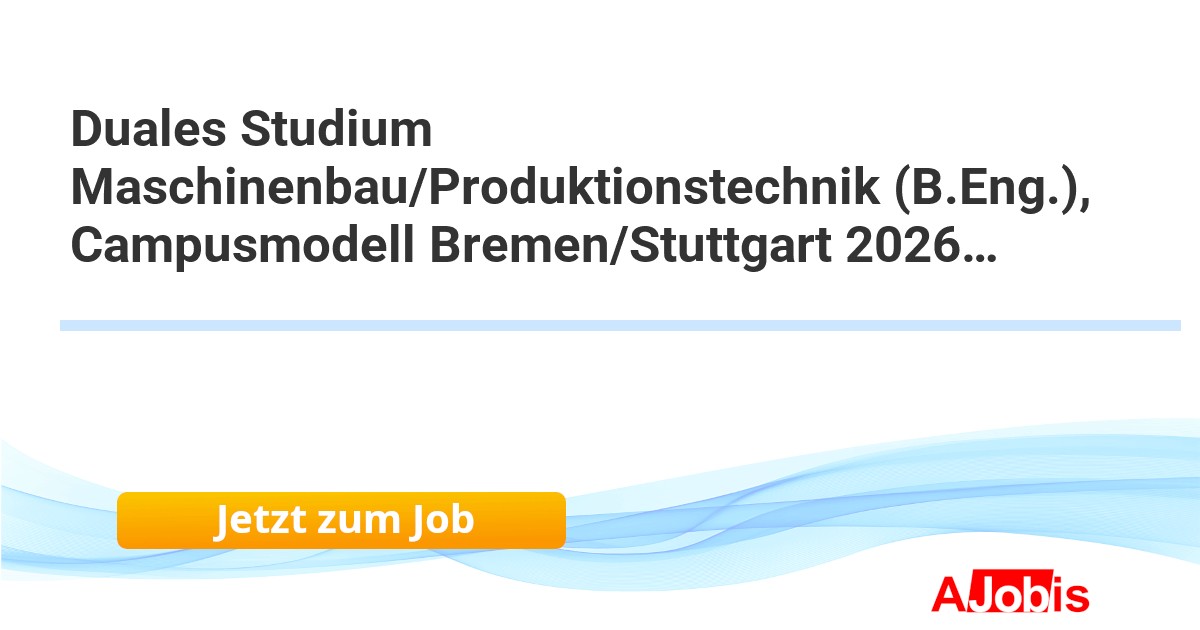Duales Studium Maschinenbau/Produktionstechnik (B.Eng.), Campusmodell Bremen/Stuttgart 2026 (w/m/d)* Mercedes-Benz AG - Bremen, Stuttgart[24.11.2025] --Life is always about becoming… Im Leben geht es darum, sich auf eine Reise zu begeben, um die beste Version unseres zukünftigen Selbst zu werden. Während wir Neues entdecken, stellen wir uns Herausforderungen, meistern sie und wachsen über uns hinaus. Bewerben Sie sich bei... |