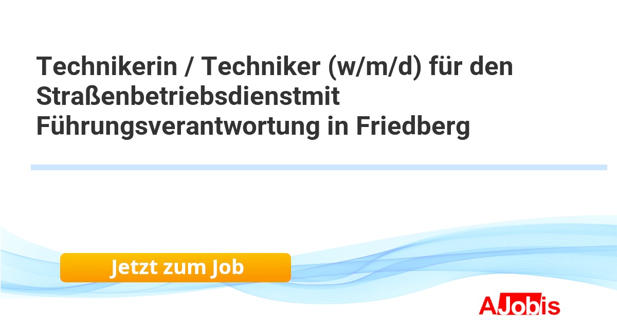 Technikerin / Techniker (w/m/d) für den Straßenbetriebsdienstmit Führungsverantwortung in Friedberg* Hessen Mobil – Straßen- und Verkehrsmanagement - Friedberg (Hessen)[22.11.2025] --Hessen Mobil verbindet Menschen und Orte in Hessen. Als Straßenbaubehörde verantworten wir die komplette Wertschöpfungskette des Straßenbaus. Die Abteilung Betrieb und Verkehr sorgt unter anderem mit ihren 46 Straßenmeistereien ganzjährig für die Verkehrssicherheit sowie... |