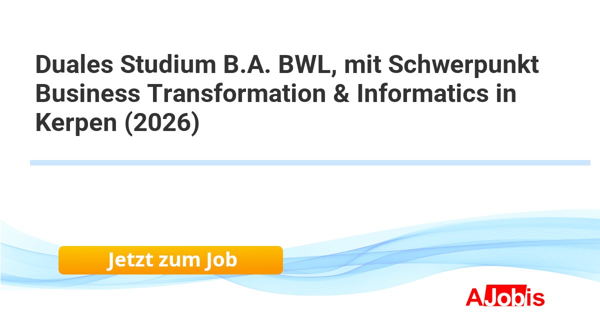 IU Internationale Hochschule - Dortmund [28.10.2025] -- Du möchtest im Bereich BWL durchstarten? Beginne Dein Duales Studium beim passenden Praxispartner. Erlebe unser Duales Studium mit Lehrveranstaltungen an zwei Tagen pro Woche am Campus. Vertiefe anschließend Dein Wissen mithilfe unserer interaktiven Lernmaterialien. Die... |