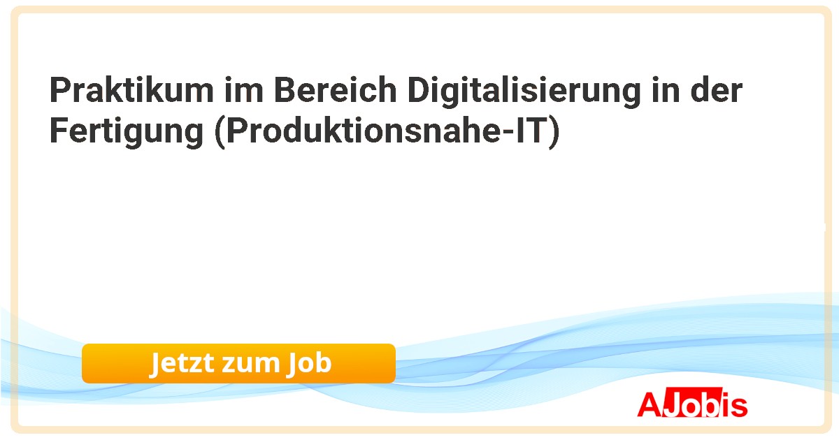Praktikum im Bereich Projektmanagement Digitalisierung & Automatisierung innerbetriebliche Logistik* Bosch Gruppe - Salzgitter[06.11.2025] --Möchten Sie Ihre Ideen in nutzbringende und sinnvolle Technologien verwandeln? Ob im Bereich Mobility Solutions, Consumer Goods, Industrial Technology oder Energy and Building Technology - mit uns verbessern Sie die Lebensqualität der Menschen auf der ganzen Welt. Willkommen... |