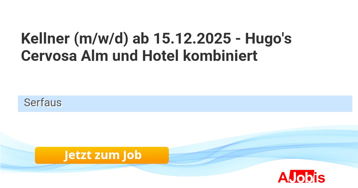 Wellnesshotel Cervosa ***** - Serfaus [24.11.2025] -- Serfaus Gourmet & Spa Resort Anstellungsart: Zeit- / Saisonvertrag versiertes und gutes Auftreten, Verkauf und Empfehlungen von Speisen und Getränken, persönliche Fürsorge und gepflegte Kommunikation. Aufnehmen und Verrechnen der Konsumation. Team-Player in allen... |