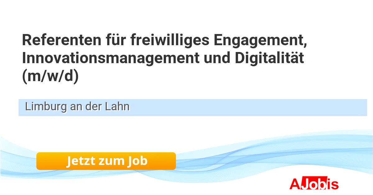 Bistum Limburg Bischöfliches Ordinariat - Limburg an der Lahn [06.11.2025] --Das Bistum Limburg, Querschnittsbereich Strategie und Entwicklung, sucht zum nächstmöglichen Zeitpunkt einen Referenten für freiwilliges Engagement, Innovationsmanagement und Digitalität (m/w/d)(100 % Beschäftigungsumfang – befristet bis zum 31.12.2030, mit Option auf 2... |
