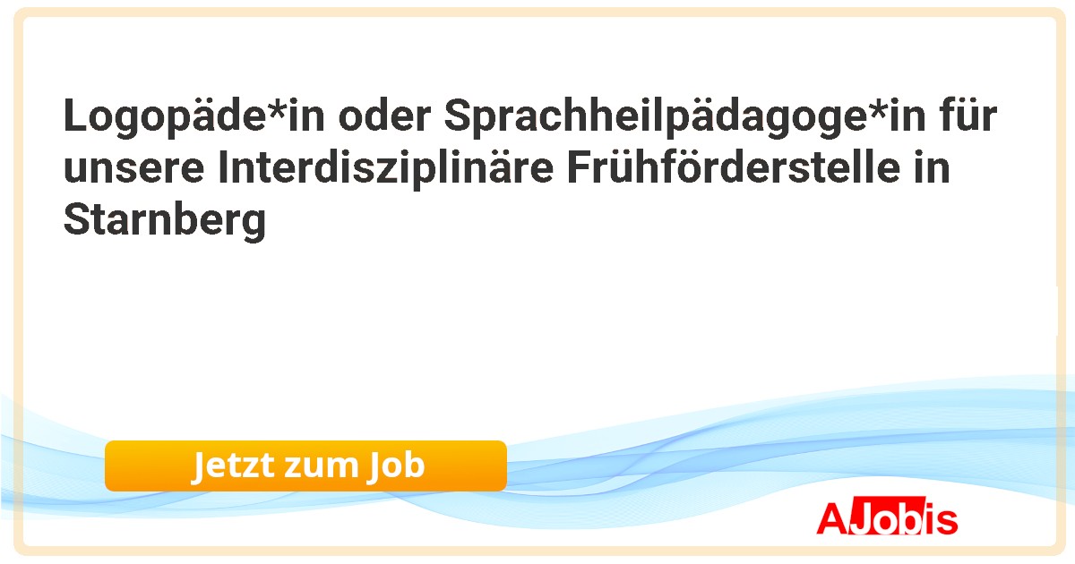 Lebenshilfe Starnberg gemeinnützige GmbH - Starnberg [22.11.2025] -- Wo Zuversicht eine Zukunft hat Logopäde*in oder Sprachheilpädagoge*in für unsere Interdisziplinäre Frühförderstelle in Starnberg Du unterstützt Kinder fachlich kompetent in ihrer Entwicklung und hälst die Einbeziehung der Familien für wichtig? Dir ist... |