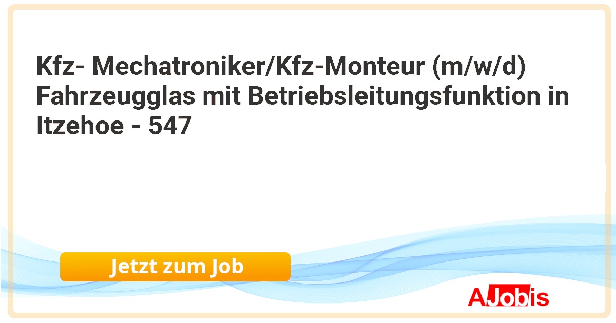 Carglass GmbH - Itzehoe [27.11.2025] --Wir sind mit mehr als 2.600 Expert*innen führend für die Reparatur und den Austausch von Fahrzeugscheiben in Deutschland. Mit über 370 Service-Centern und 240 mobilen Einheiten stehen wir für Sicherheit, Verlässlichkeit und höchste Qualitätsansprüche. Wir machen den... |