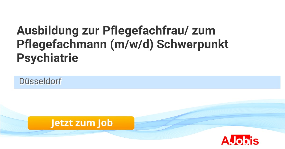 LVR-Klinikum Düsseldorf - Düsseldorf [26.11.2025] -- Ausbildung zur Pflegefachfrau / zum Pflegefachmann (m/w/d) Schwerpunkt Psychiatrie Jetzt bewerben! Standort: Düsseldorf Einsatzstelle: LVR-Klinikum Düsseldorf Vergütung: TVAöD Arbeitszeit: Vollzeit Befristung: befristet für die Dauer der Ausbildung Bewerbungsfrist:... |