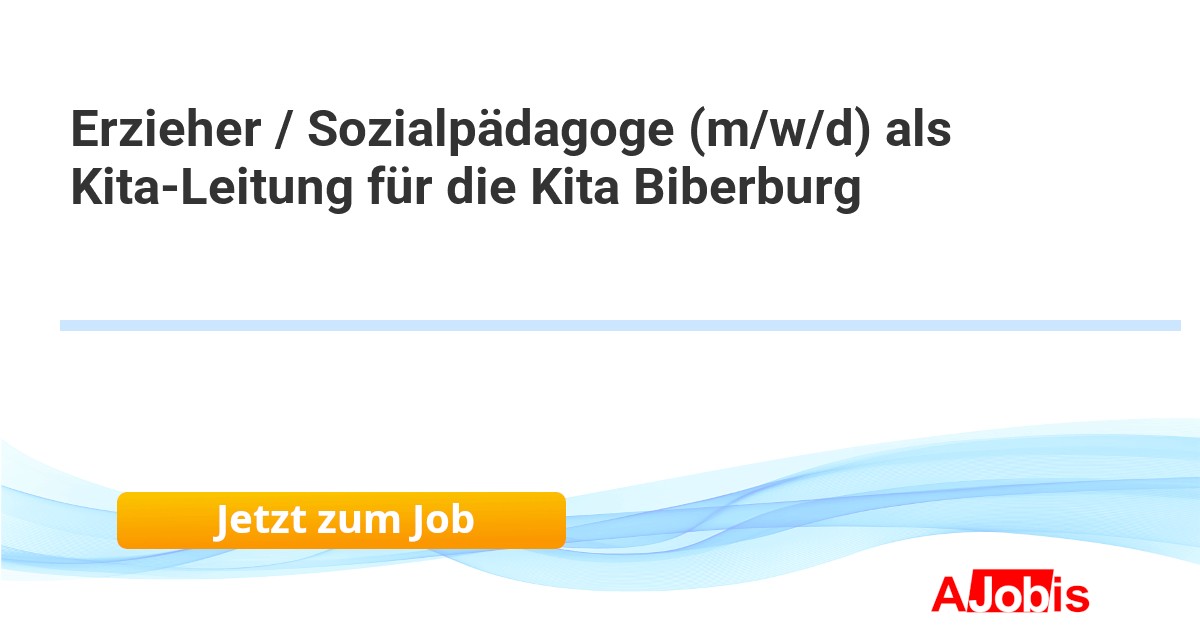 Kindertagesstätten Nordwest - Berlin [28.11.2025] --Sie haben Lust auf eine neue Herausforderung, möchten ein Team begleiten und entwickeln und so zu einer hohen Qualität der Kinderbetreuung im Bezirk Spandau beitragen? Aktuell suchen wir Sie als neue: Kita-Leitung (m|w|d) für die Kita Biberburg, Gatower Straße 231, 14089... |