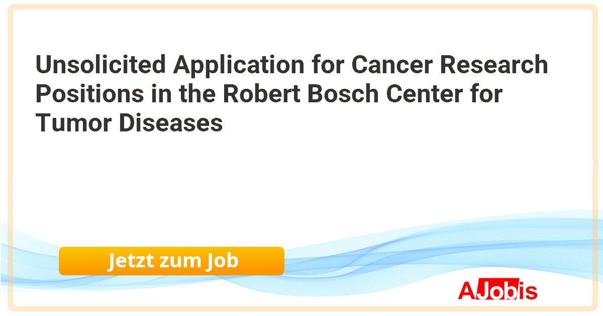 Unsolicited Application for Cancer Research Positions in the Robert Bosch Center for Tumor Diseases* Robert-Bosch-Krankenhaus GmbH - Stuttgart[08.11.2025] --You haven't found the right vacancy in our job advertisements? You are welcome to send us an unsolicited application via our online career portal to be included in our pool of applicants. We may get in touch with you later. Also candidates for B.Sc., M.Sc. projects and other... |