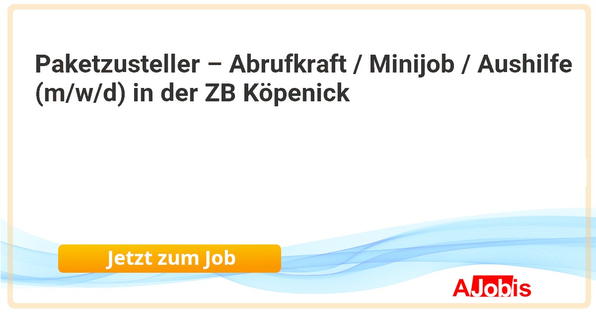 Deutsche Post & DHL - Berlin Treptow-Köpenick [27.11.2025] --Werde Paketzusteller/Abrufkraft auf Abruf bei Deutsche Post DHL (m/w/d) Als Paketzusteller/Abrufkraft (m/w/d) für die Paketzustellung. Auch Quereinsteiger sind bei uns herzlich willkommen, denn du zählst, wie du bist! ... |