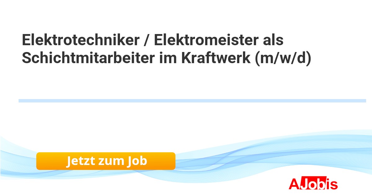 Stadtwerke Kiel AG - Kiel [29.11.2025] -- Elektrofachkraft als Schichtmitarbeiter im Kraftwerk (m/w/d) - Weiterbildung zum Meister (m/w/d) Eintrittstermin: zum nächstmöglichen Zeitpunkt Arbeitszeit: Vollzeit Vertragslaufzeit: unbefristet Unternehmen: Stadtwerke Kiel AG Für unser Schichtteam der... |