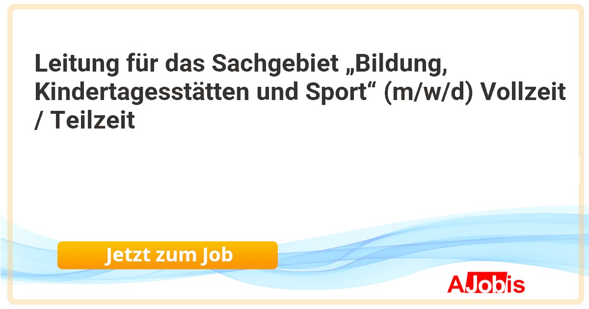 Gemeinde Kronshagen - Kronshagen [23.11.2025] -- Wir suchen zum nächstmöglichen Zeitpunkt unbefristet eine Leitung für das Sachgebiet „Bildung, Kindertagesstätten und Sport“ (m/w/d)in Voll- oder Teilzeit. Die Vergütung erfolgt bei Vorliegen der persönlichen Voraussetzungen nach der Entgeltgruppe 11 TVöD bzw. A... |