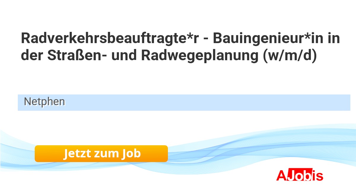 Landesbetrieb Straßenbau Nordrhein-Westfalen (Straßen.NRW) - Netphen [22.11.2025] --Wir sind der Ansprechpartner Nummer eins, wenn es um Bundes- und Landesstraßen oder Rad(schnell)wege im bevölkerungsreichsten Bundesland geht. Wir sind Straßen.NRW. Ein zentraler, moderner Mobilitätsdienstleister, der jedoch im ganzen Land - vor Ort - zu finden ist. Wir... |