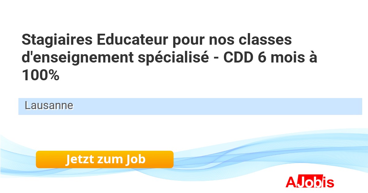 Fondation Eben-Hézer - Lausanne [23.11.2025] -- Éducateur social ou MSP diplômé (H/F) - UAA - 80%Eben-Hézer Lausanne accueille et accompagne depuis 125 ans des personnes ayant une déficience intellectuelle. Elle promeut un regard positif sur les personnes en situation de handicap et met ses compétences au service de... |