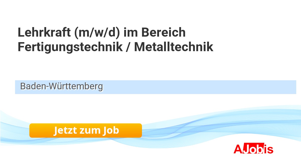 Ministerium für Kultus, Jugend und Sport Baden-Württemberg - Baden-Württemberg [27.11.2025] -- Das Ministerium für Kultus, Jugend und Sport ist als Landesbehörde zuständig für die Bildungsangebote des Landes von der Kita bis zur Hochschulreife. Ihr Ziel: Lehrkraft (m/w/d) im Bereich Fertigungstechnik / Metalltechnik an beruflichen Schulen in Baden-Württemberg... |
