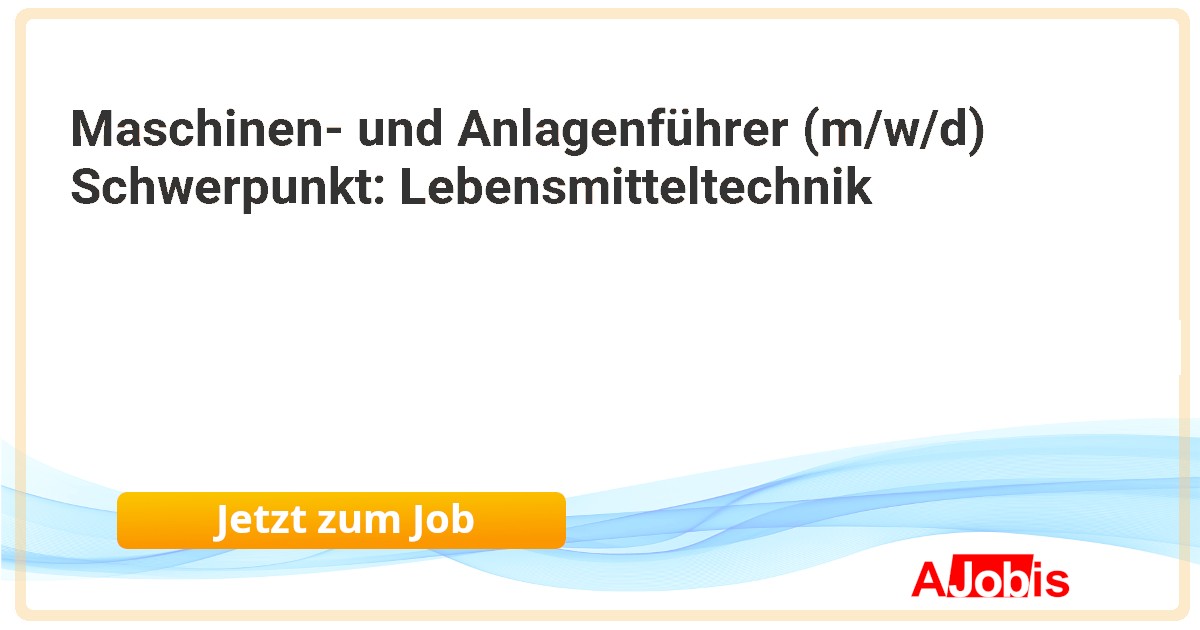 Als Maschinenbediener / Anlagenführer stellst du die Produktionsfähigkeit sowie die qualitativen und quantitativen... |