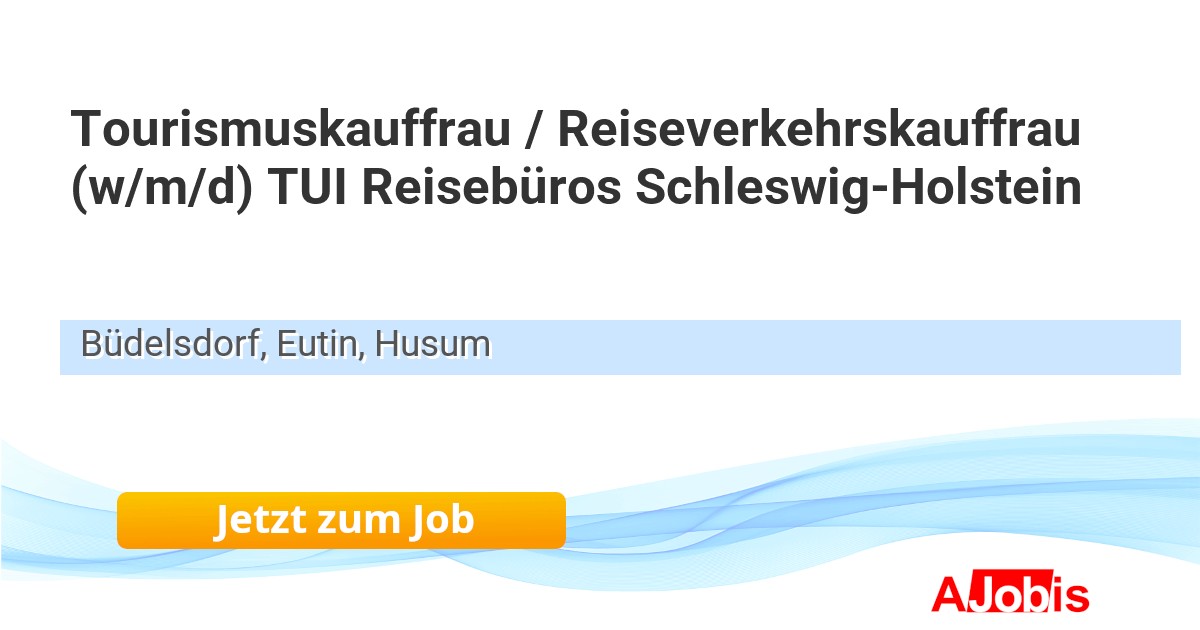 TUI Deutschland GmbH - Büdelsdorf, Eutin, Husum, Kiel, Lübeck [26.11.2025] --Für unsere konzerneigenen TUI Reisebüros in Büdelsdorf, Eutin, Husum, Kiel und Lübeck suchen wir zum nächstmöglichen Zeitpunkt jeweils eine/n Tourismuskauffrau / Reiseverkehrskaufmann (m/w/d) in Teilzeit oder Vollzeit.... |