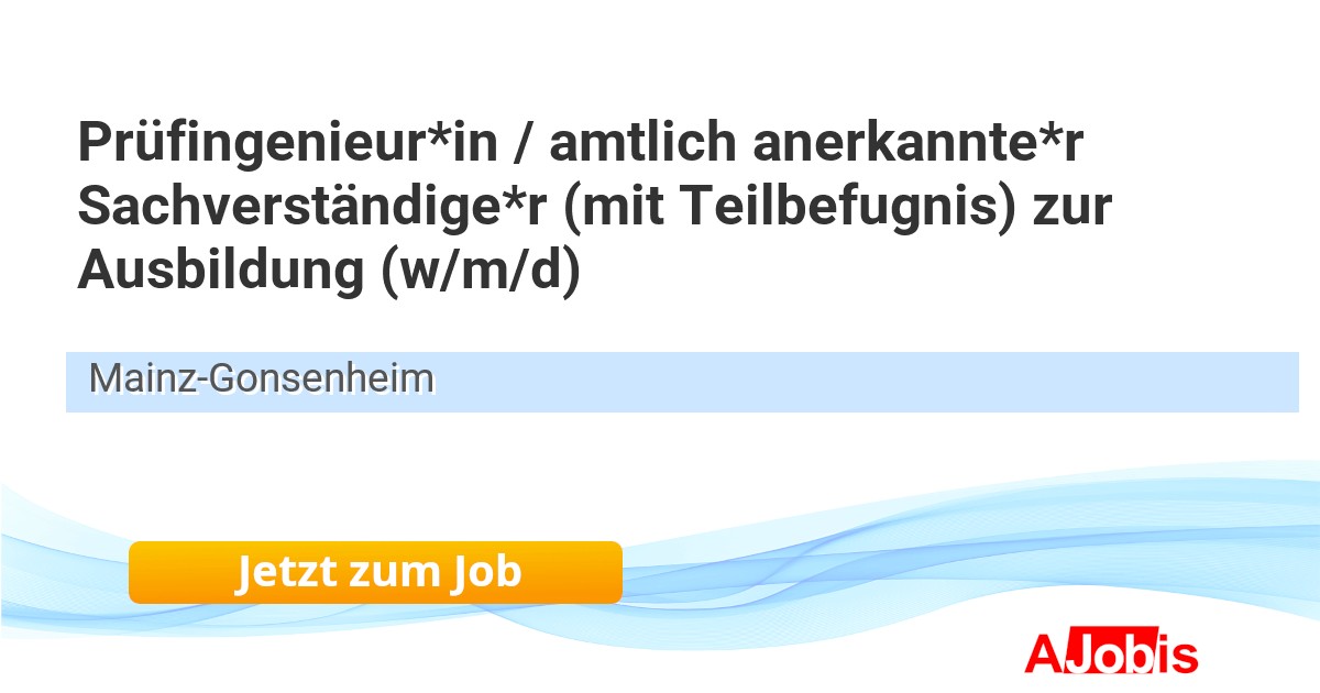 Prüfingenieur*in / amtlich anerkannte*r Sachverständige*r (mit Teilbefugnis) zur Ausbildung (w/m/d)* TÜV Rheinland Group - Mainz-Gonsenheim[06.11.2025] --Referenzcode: 16220 Gesellschaft: TÜV Rheinland Kraftfahrt GmbH Die Begeisterung für zukunftsweisende Lösungen teilen wir mit über 27.000 Menschen rund um den Globus. Bei TÜV Rheinland können Sie Ihr Wissen eigenverantwortlich einbringen und sich dabei persönlich immer... |
