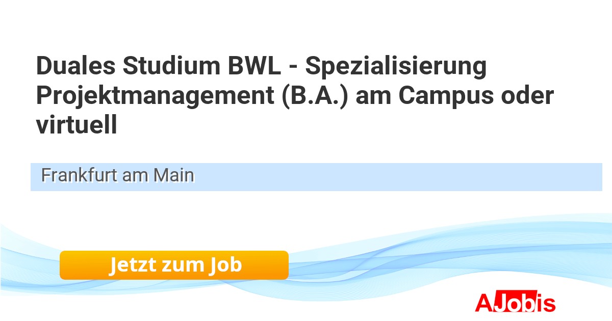 IU Internationale Hochschule - Frankfurt am Main [10.11.2025] -- Du bist ein Organisationstalent und möchtest in der Welt des Projektmanagements durchstarten? Dann könnte das Duale Studium BWL - Spezialisierung Projektmanagement genau das Richtige für Dich sein! Du eignest Dir unter anderem an, komplexe Projekte zu planen, zu... |