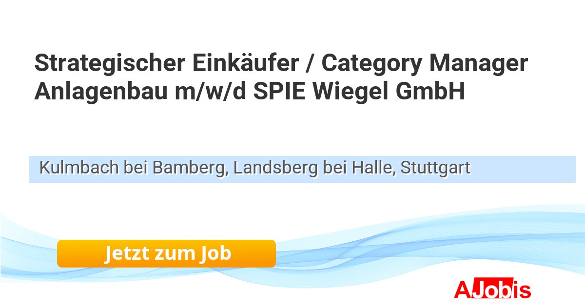 SPIE Wiegel GmbH - Kulmbach bei Bamberg, Landsberg bei Halle, Stuttgart [06.11.2025] --Bonjour, Servus, Grüezi und Hallo, wir sind SPIE Germany Switzerland Austria. Wir - das sind 20.000 Technikbegeisterte an 250 Standorten in Deutschland, der Schweiz, Österreich und darüber hinaus, die sich gemeinsam mit unseren Kunden für eine klimafreundliche und digitale... |
