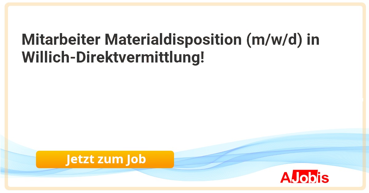 Piening GmbH - Willich [28.11.2025] --Bist du bereit, als Materialdisposition (m/w/d) bei unserer Auftraggeber ein weltweiter Hersteller von Produkten im medizinischen Bereich durchzustarten? Am Standort Willich bieten wir dir die Chance, deine Fähigkeiten im Rahmen einer Direktvermittlung unter Beweis zu stellen... |