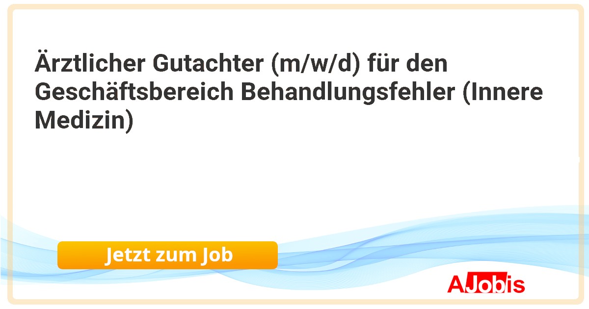 Medizinischer Dienst Niedersachsen KdöR - Hannover [14.11.2025] -- Ärztlicher Gutachter (m/w/d) für den Geschäftsbereich Behandlungsfehler (Innere Medizin) Gutes tun im gesetzlichen Auftrag: Als unabhängiger Gutachterdienst unterstützen und beraten wir, der Medizinische Dienst Niedersachsen, die gesetzliche Krankenversicherung sowie... |