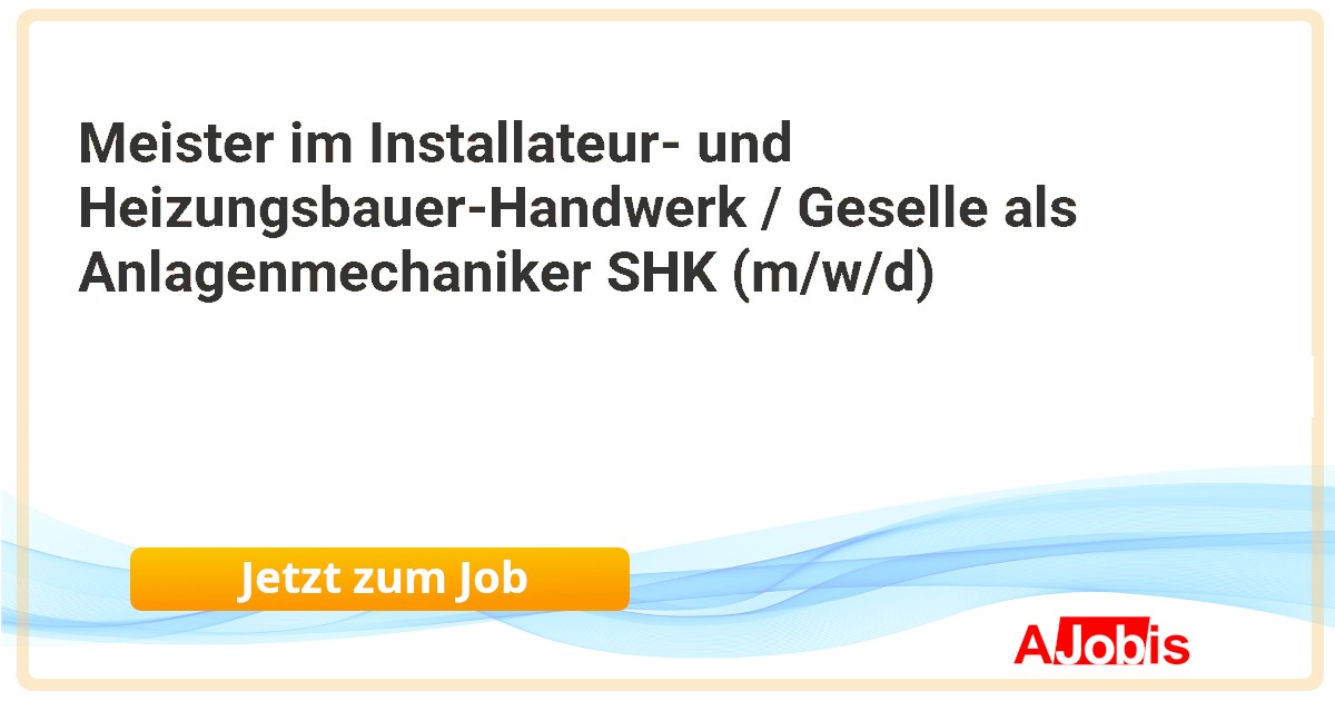 Handwerkskammer Flensburg - Heide [26.11.2025] -- Rendsburg und HeideVoll- oder Teilzeitunbefristetab sofort Meister im Installateur- und Heizungsbauer-Handwerk bzw. Geselle als Anlagenmechaniker SHK (m/w/d) Als Ausbilder (m/w/d) in unserem Bildungszentrum am Standort Rendsburg und Heide geben Sie innerhalb einer spannenden... |
