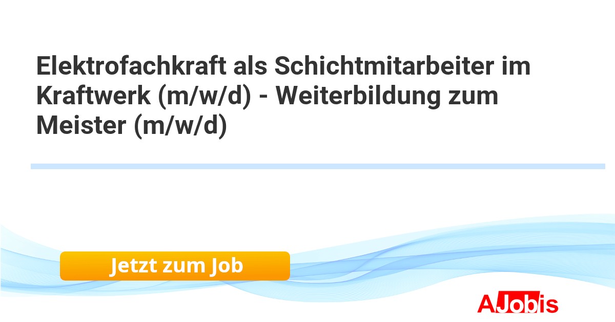 Stadtwerke Kiel AG - Kiel [23.11.2025] -- Elektrofachkraft als Schichtmitarbeiter im Kraftwerk (m/w/d) - Weiterbildung zum Meister (m/w/d) Eintrittstermin: zum nächstmöglichen Zeitpunkt Arbeitszeit: Vollzeit Vertragslaufzeit: unbefristet Unternehmen: Stadtwerke Kiel AG Für unser Schichtteam der... |