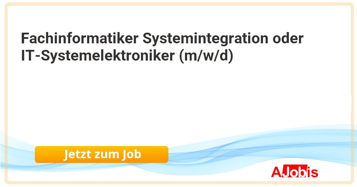 Robert Müller GmbH - Saarlouis [06.11.2025] -- Fachinformatiker für Systemintegration (m/w/d) 66740 Saarlouis Vollzeit Sofort Wir suchen in Saarlouis eine/n Fachinformatiker/in für Systemintegration (m/w/d) Unser Team der IT-Abteilung kümmert sich in Aufgabenteilung um die Software einschließlich Programmierung... |