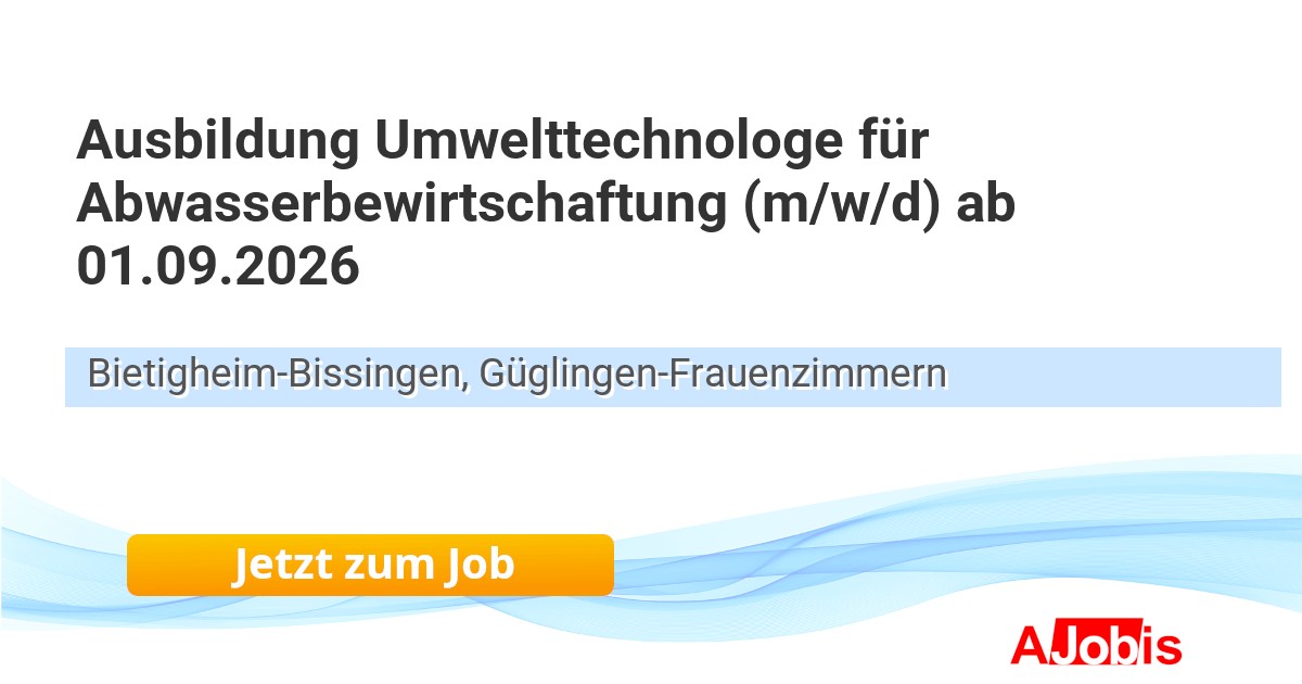 Stadtwerke Bietigheim-Bissingen GmbH - Bietigheim-Bissingen, Güglingen-Frauenzimmern [16.11.2025] --Starte deine Zukunft bei den SWBB! Du willst nicht nur irgendeine Ausbildung, sondern was mit Sinn, Abwechslung und echten Perspektiven? Dann bist du bei uns genau richtig! Wer wir sind:Die Stadtwerke Bietigheim-Bissingen (SWBB) sind dein regionaler Energieversorger –... |