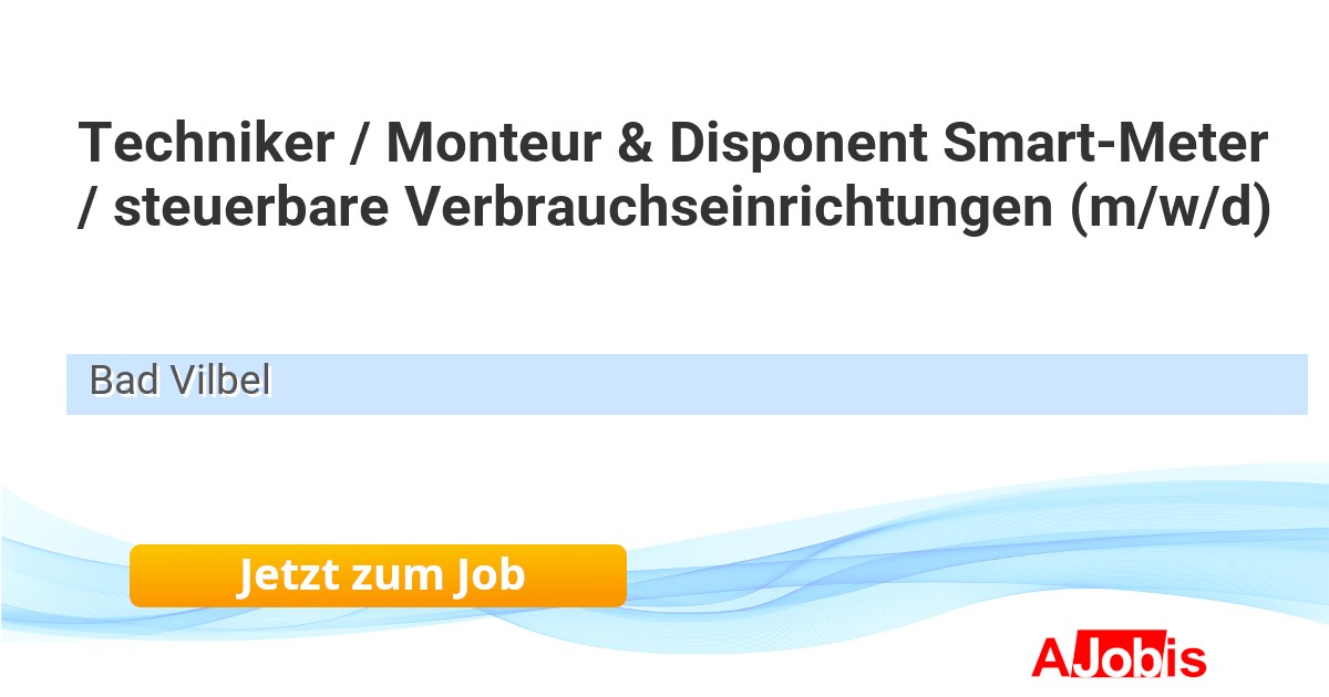 Stadtwerke Bad Vilbel GmbH - Bad Vilbel [29.10.2025] --Im Rahmen Ihrer Tätigkeit übernehmen Sie die Montage, Inbetriebnahme und den Austausch von intelligenten Messsystemen (Smart Meter, mME, SMGw) sowie von steuerbaren Verbrauchseinrichtungen, beispielsweise Wallboxen