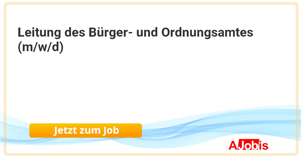 Stadtverwaltung Mühlacker - Mühlacker [30.11.2025] -- Die Stadt Mühlacker sucht zum nächstmöglichen Zeitpunkt eine Leitung des Bürger- und Ordnungsamtes (m/w/d) in Vollzeit Ihre Aufgaben: Leitung des Amtes mit den Sachgebieten Bürgerdienste, Straßenverkehrsbehörde, Ortspolizeibehörde und Feuerwehr und den... |