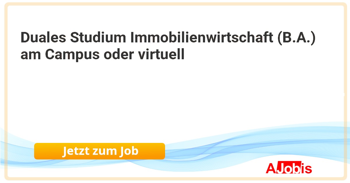 IU Internationale Hochschule - Münster [22.11.2025] -- Du willst in der boomenden Immobilienbranche durchstarten? Dann bewirb Dich für ein Duales Studium Immobilienwirtschaft. Du kannst je nach Standort im Januar, April, Juli oder im Oktober starten– direkt am Campus vor Ort oder ganz flexibel virtuell. Deine Praxisphasen... |
