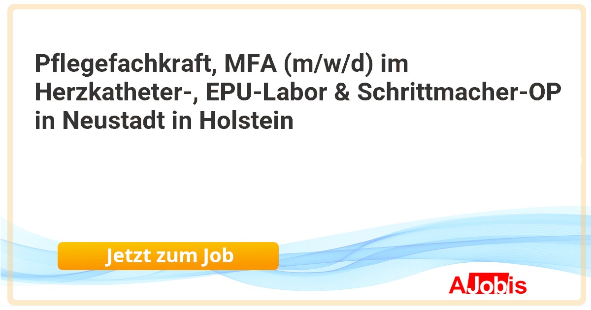 Pflegefachkraft, MFA (m/w/d) im Herzkatheter-, EPU-Labor & Schrittmacher-OP in Neustadt in Holstein* Schön Klinik Gruppe - Neustadt in Holstein[07.11.2025] --Sie möchten Patient:innen in sensiblen Momenten mit Empathie und Herz begleiten? Dann werden Sie Teil unseres spezialisierten Teams im Herzkatheter-, EPU-Labor & Schrittmacher-OP, wo einfühlsame Pflege den Unterschied macht.Die Schön Klinik Neustadt liegt direkt am... |