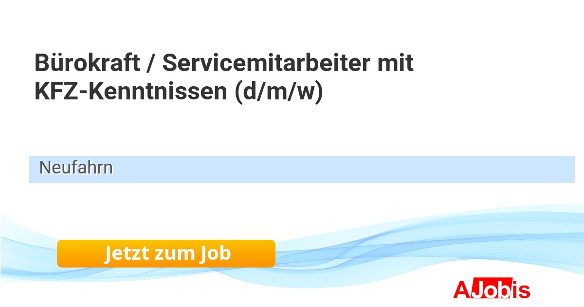 wirkaufendeinauto.de - Neufahrn [07.11.2025] --Für unsere offene Position als Bürokraft / Servicemitarbeiter mit KFZ-Kenntnissen (d/m/w) suchen wir dich! Starte im Branch Network Team und sei verantwortlich für die Durchführung von Autokäufen, Fahrzeugbewertungen und Filialbetrieb unseres WKDA Purchasing Departments.... |
