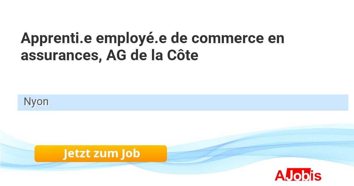 Generali Assurances - Nyon [24.11.2025] --Nous cherchons pour notre Direction de Nyon pour la rentrée d'août 2026 un Apprenti employé de commerce en assurance privée, CFC avec ou sans maturité intégrée (h/f/d).Apprenti employé de commerce en assurance privée (h/f/d)DÈS LE PREMIER JOUR, AU CUR DE L'ACTION.... |