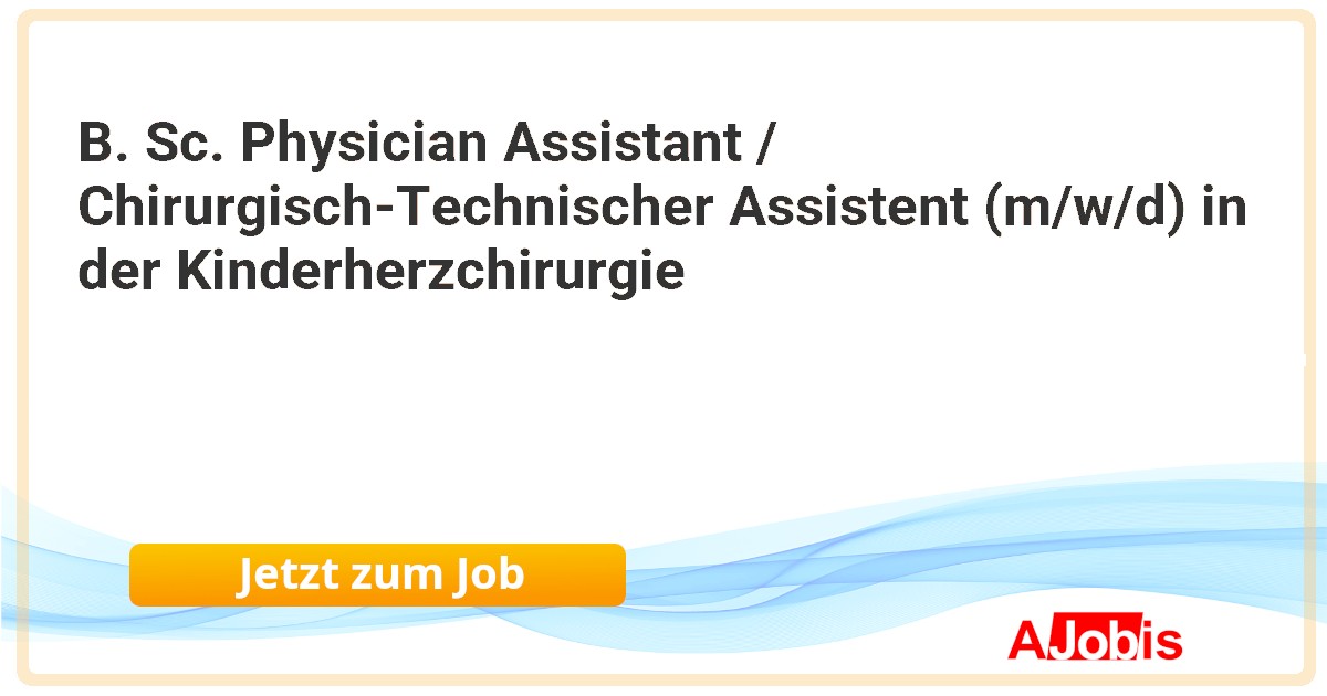 Deutsches Herzzentrum der Charité (DHZC) - Berlin [07.11.2025] --Physician Assistant (d/w/m) VAD-Station FachgebietKardiologie, Herzchirurgie Kennziffer: 5280 | Arbeitszeit: Vollzeit | Eintrittsdatum: Zum nächstmöglichen Zeitpunkt | Dauer der Anstellung: Unbefristet | Bewerbungsfrist: 18.11.2025 | Entgeltgruppe: E12 Arbeiten am Deutschen... |