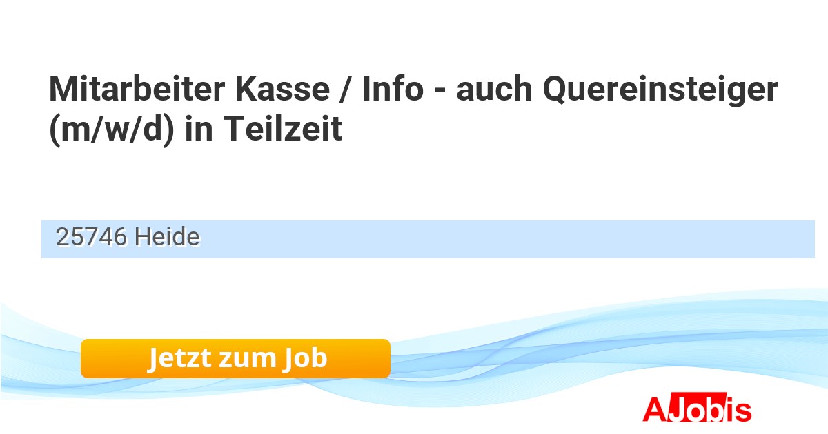 toom Baumarkt GmbH (Ein Unternehmen der REWE Group) - 25746 Heide [23.11.2025] --Mitarbeiter Kasse / Info - auch Quereinsteiger (m/w/d) in Teilzeit In Teilzeit mit 80 bis 120 Stunden monatlich. Bei uns stehst du im Vordergrund. Und ein ganzes Team hinter dir: Denn Respekt, gegenseitige Wertschätzung und Unterstützung sind für uns das Wichtigste – egal... |