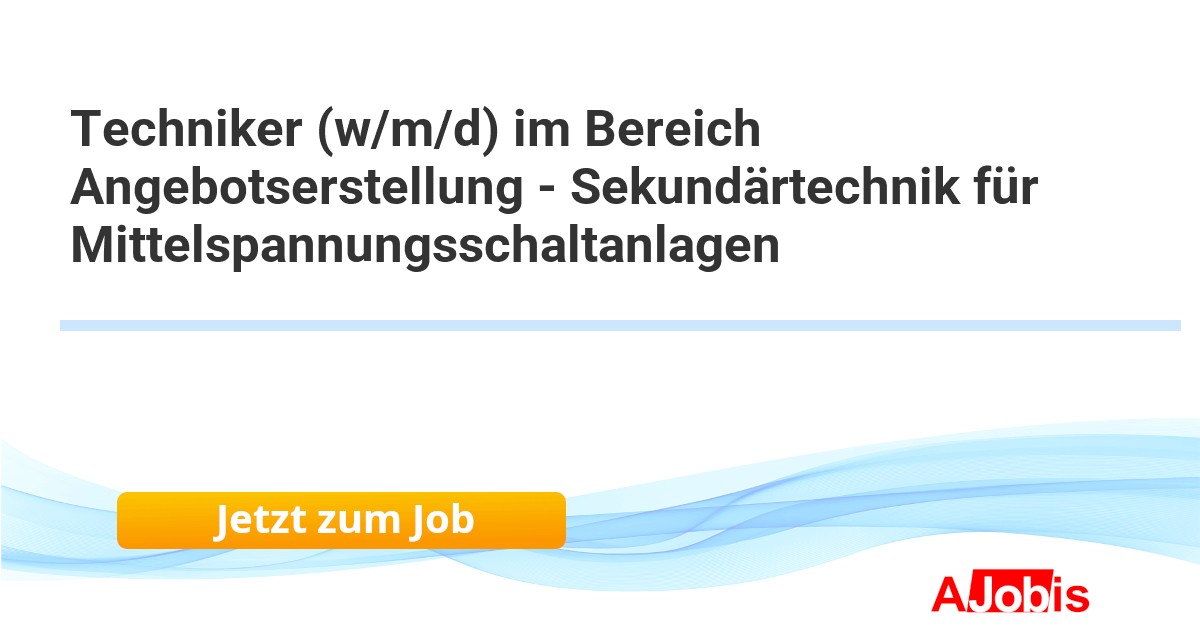 Techniker (w/m/d) im Bereich Angebotserstellung - Sekundärtechnik für Mittelspannungsschaltanlagen