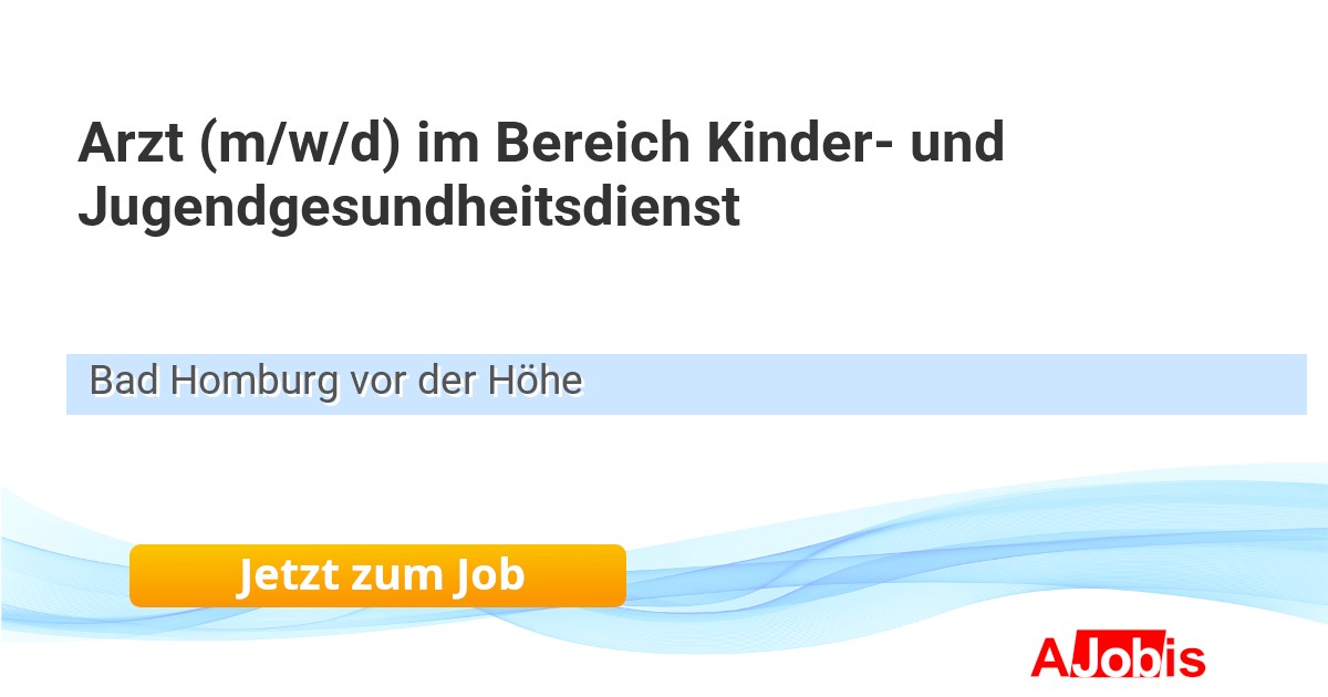 Hochtaunuskreis - Bad Homburg vor der Höhe [06.11.2025] --Der Kreisausschuss des Hochtaunuskreises sucht zum nächst möglichen Zeitpunkt einen Arzt (m/w/d) im Bereich Kinder- und Jugendgesundheitsdienst im Fachbereich 60.50 - Gesundheitsdienste, Veterinärwesen und Verbraucherschutz. Die Vergütung erfolgt nach Entgeltgruppe 14... |