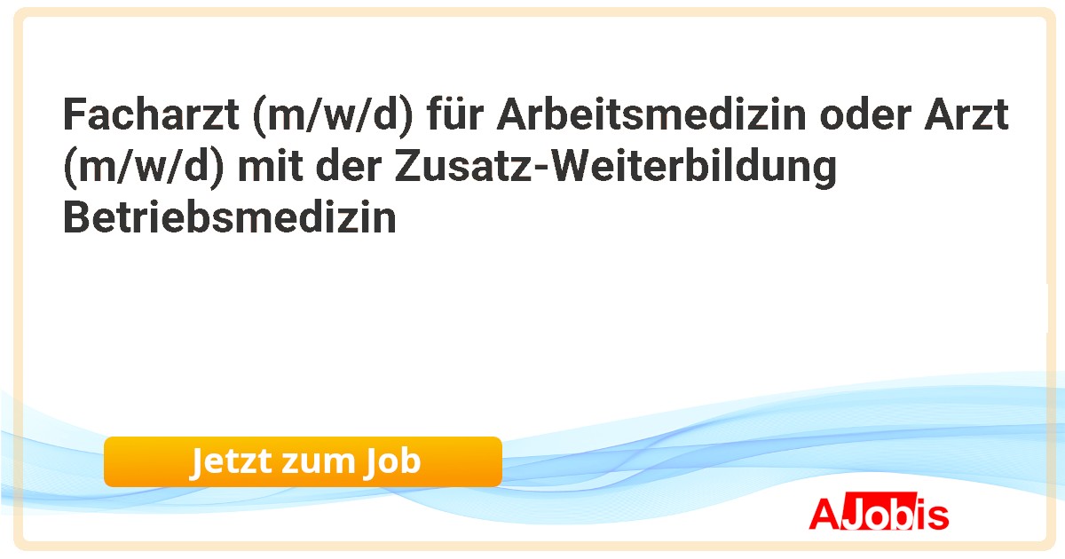 ASZ GmbH & Co. KG - Dortmund [06.11.2025] -- Facharzt für Arbeitsmedizin oder Arzt in Weiterbildung (w/m/x) - Dortmund Festanstellung, Vollzeit · Dortmund DER AUFGABENBEREICH Vielseitige Betreuung unserer Unternehmenskund:innen aus unterschiedlichsten Branchen – von Handwerksbetrieben bis hin zu Großunternehmen... |