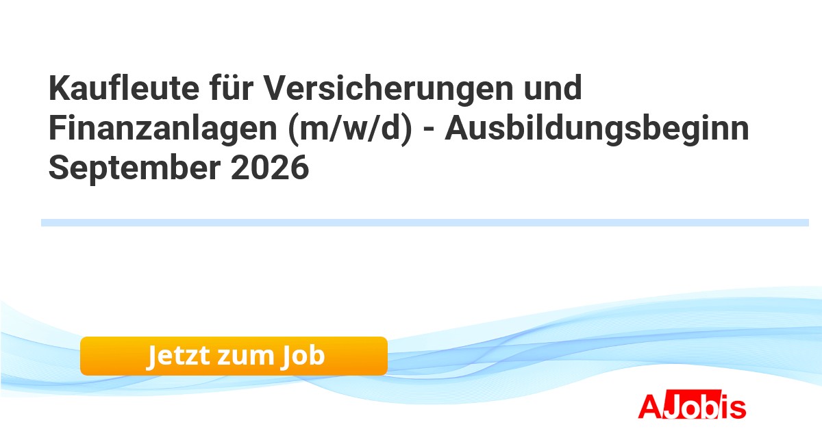 Württembergische Versicherung Aktiengesellschaft - Ravensburg [30.10.2025] --Die vertriebsorientierte Ausbildung „Kaufmann/ -frau für Versicherungen und Finanzanlagen“ bei der Württembergischen Versicherung dauert 2,5 oder 3 Jahre. In einer selbständigen Versicherungsagentur werden dir wesentliche Grundlagen für dein weiteres Berufsleben... |