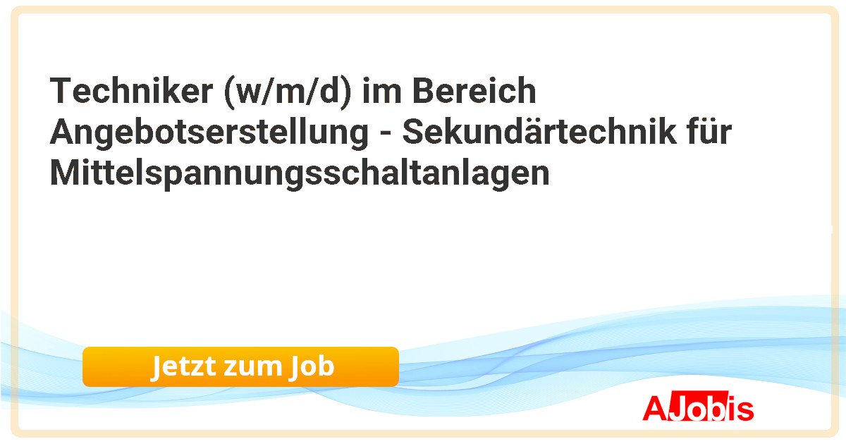 Techniker (w/m/d) im Bereich Angebotserstellung - Sekundärtechnik für Mittelspannungsschaltanlagen*
