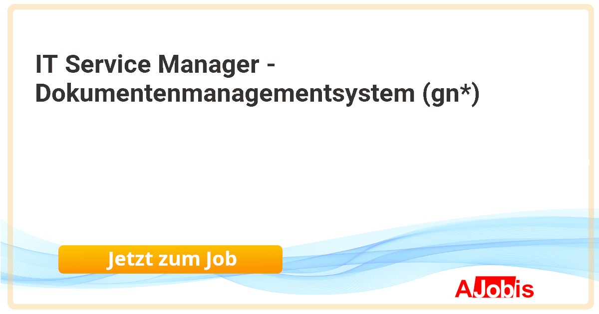 Woolworth GmbH - Unna [26.11.2025] -- IT Service Manager - Dokumentenmanagementsystem (gn*) Unna bei Dortmund Vollzeit Deine Aufgaben Verantwortung für Dokumentenmanagementsystem (DMS) und angebundene Prozesse Anforderungsmanagement und Systemoptimierung Enge Zusammenarbeit mit Fachbereichen zur... |