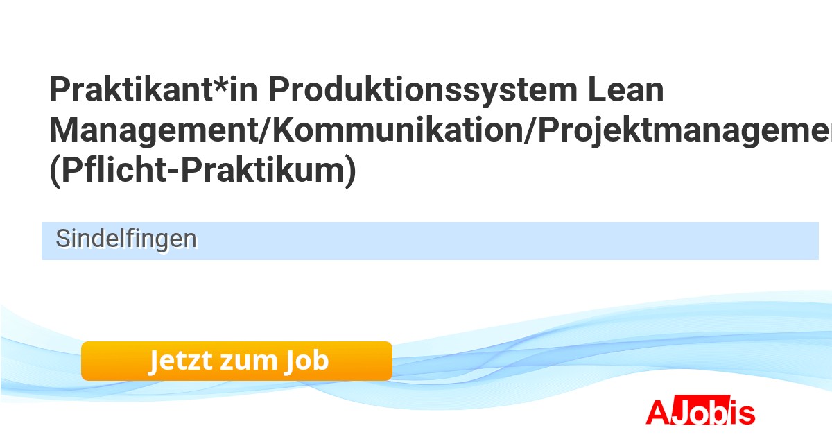 Praktikant*in Produktionssystem Lean Management/Kommunikation/Projektmanagement (Pflicht-Praktikum)* Mercedes-Benz AG - Sindelfingen[27.11.2025] --Life is always about becoming… Im Leben geht es darum, sich auf eine Reise zu begeben, um die beste Version unseres zukünftigen Selbst zu werden. Während wir Neues entdecken, stellen wir uns Herausforderungen, meistern sie und wachsen über uns hinaus. Bewerben Sie sich bei... |
