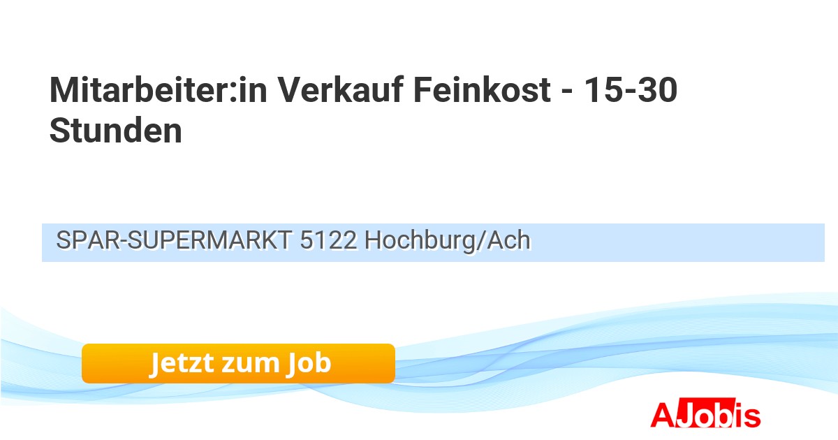 SPAR Österreichische Warenhandels AG - SPAR-SUPERMARKT 5122 Hochburg/Ach [22.10.2025] -- SPAR ist ein 100%iges Familienunternehmen – und das spürt man. Ein menschlicher Umgang und ein tolles Team treffen auf viele handfeste Vorteile wie faire Bezahlung, flexible Arbeitszeiten und vor allem mehr Möglichkeiten mit Sicherheit. Wir freuen uns auf Sie!... |
