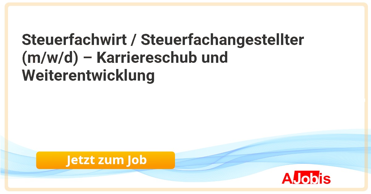 Stellenanzeigen Und als Steuerfachwirt