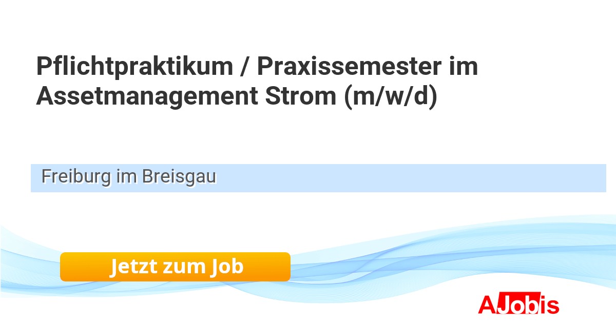 badenovaNETZE GmbH - Freiburg im Breisgau [06.11.2025] --Der beste Energie- und Umweltdienstleister in Baden-Württemberg zu sein – das ist unser Anspruch. Diesen Anspruch können wir nur dank kompetenter und engagierter Mitarbeiter (m/w/d) erfüllen. Wir bieten ein Pflichtpraktikum / Praxissemester im Assetmanagement Strom... |