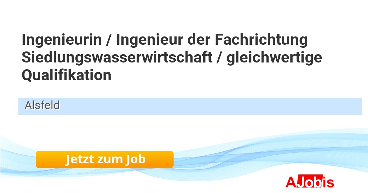 Stadtwerke Alsfeld - Alsfeld [24.11.2025] -- Bei der Stadt Alsfeld ist im Eigenbetrieb Stadtwerke Alsfeld zum 01.01.2026 bzw. zum nächstmöglichen Zeitpunkt die Stelle einer/eines Ingenieurin/ Ingenieurs der Fachrichtung Siedlungswasserwirtschaft oder gleichwertige Qualifikationin Vollzeit (39 Wochenstunden) neu zu... |
